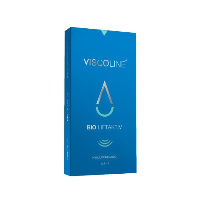 Имплантат внутридермальный VISCOLINE® BIO в исполнении VISCOLINE® BIO LIFTAKTIV представляет собой гель для восполнения потерь гиалуроновой кислоты, связанных с возрастными изменениями. Предназначен для повышения увлажненности и упругости кожи. Для пациентов после 35, с сухой, обезвоженной кожей, мелкоморщинистыми мускульным мофотипами старения, для более пролонгированного эффекта. Состав продукта: ГК 18 мг/мл. Глицерол 4,9 мг/мл. Курс: 3 процедуры с интервалом 14-21 день, 3 курса в год. Расход: 1-2 мл на 1 зону.